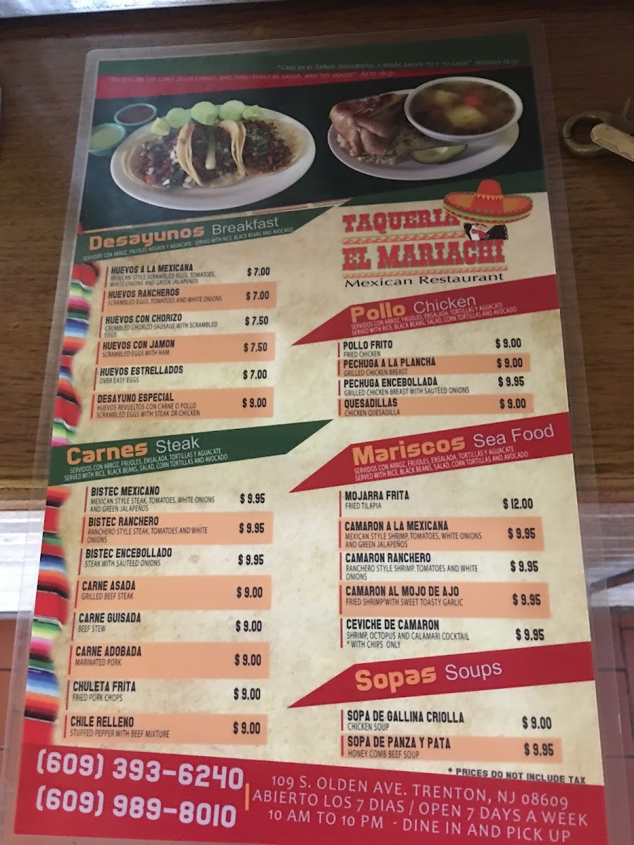 Welcome to Taqueria El Mariachi, a hidden gem located at 109 S Olden Ave, Trenton, NJ. This cozy taqueria specializes in authentic Spanish cuisine that delights the palate. Customers rave about the vibrant tomatillo salsa and the flavorful tacos, particularly the chicken and al pastor options. Tacos and flautas are generously stuffed and well-seasoned, presenting an explosion of flavor in every bite.